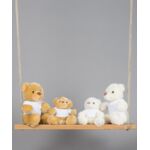 A cute mid brown coloured bear dressed in a removable white cotton T-shirt. Remove all hang tags and their fasteners before giving these items to a child.